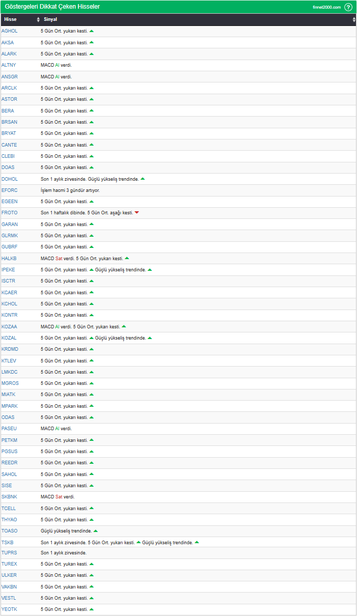 Göstergelerin Kullanımında Dikkat Edilmesi Gereken Hususlar: Göstergeler, hisse senedi seçiminde tek başına yeterli değildir. Teknik Analiz Literatüründe yaygın olan, gösterge kullanımı dikkate alınarak veriler hesaplanmıştır. Diğer teknik analiz yöntemleri ile birlikte kullanılmalıdır. Burada ön plana çıkan hisse senetleri, diğer teknik analiz yöntemleri ve temel analizle desteklendikten sonra tutarlı sonuçlar elde edilebilir. Osilatör ve göstergelerin fiyat hareketine karşı duyarlı oldukları unutulmamalıdır.
