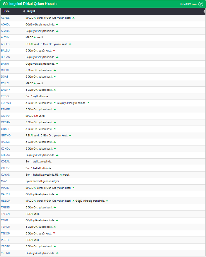 Göstergelerin Kullanımında Dikkat Edilmesi Gereken Hususlar: Göstergeler, hisse senedi seçiminde tek başına yeterli değildir. Teknik Analiz Literatüründe yaygın olan, gösterge kullanımı dikkate alınarak veriler hesaplanmıştır. Diğer teknik analiz yöntemleri ile birlikte kullanılmalıdır. Burada ön plana çıkan hisse senetleri, diğer teknik analiz yöntemleri ve temel analizle desteklendikten sonra tutarlı sonuçlar elde edilebilir. Osilatör ve göstergelerin fiyat hareketine karşı duyarlı oldukları unutulmamalıdır.