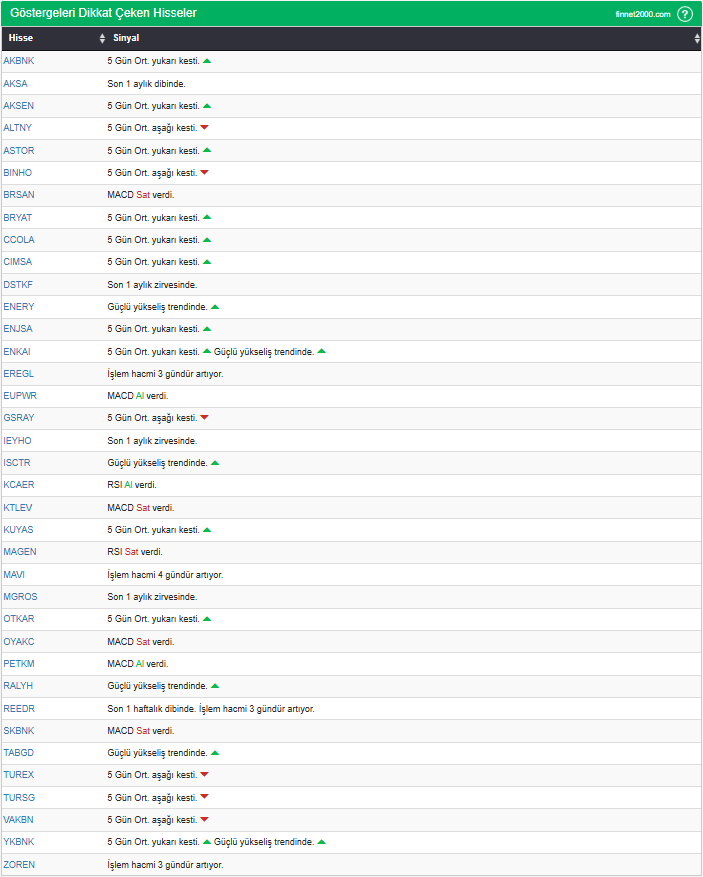 Göstergelerin Kullanımında Dikkat Edilmesi Gereken Hususlar: Göstergeler, hisse senedi seçiminde tek başına yeterli değildir. Teknik Analiz Literatüründe yaygın olan, gösterge kullanımı dikkate alınarak veriler hesaplanmıştır. Diğer teknik analiz yöntemleri ile birlikte kullanılmalıdır. Burada ön plana çıkan hisse senetleri, diğer teknik analiz yöntemleri ve temel analizle desteklendikten sonra tutarlı sonuçlar elde edilebilir. Osilatör ve göstergelerin fiyat hareketine karşı duyarlı oldukları unutulmamalıdır.