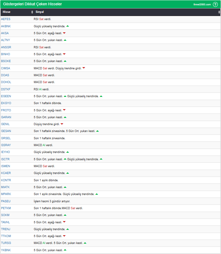 Göstergelerin Kullanımında Dikkat Edilmesi Gereken Hususlar: Göstergeler, hisse senedi seçiminde tek başına yeterli değildir. Teknik Analiz Literatüründe yaygın olan, gösterge kullanımı dikkate alınarak veriler hesaplanmıştır. Diğer teknik analiz yöntemleri ile birlikte kullanılmalıdır. Burada ön plana çıkan hisse senetleri, diğer teknik analiz yöntemleri ve temel analizle desteklendikten sonra tutarlı sonuçlar elde edilebilir. Osilatör ve göstergelerin fiyat hareketine karşı duyarlı oldukları unutulmamalıdır.