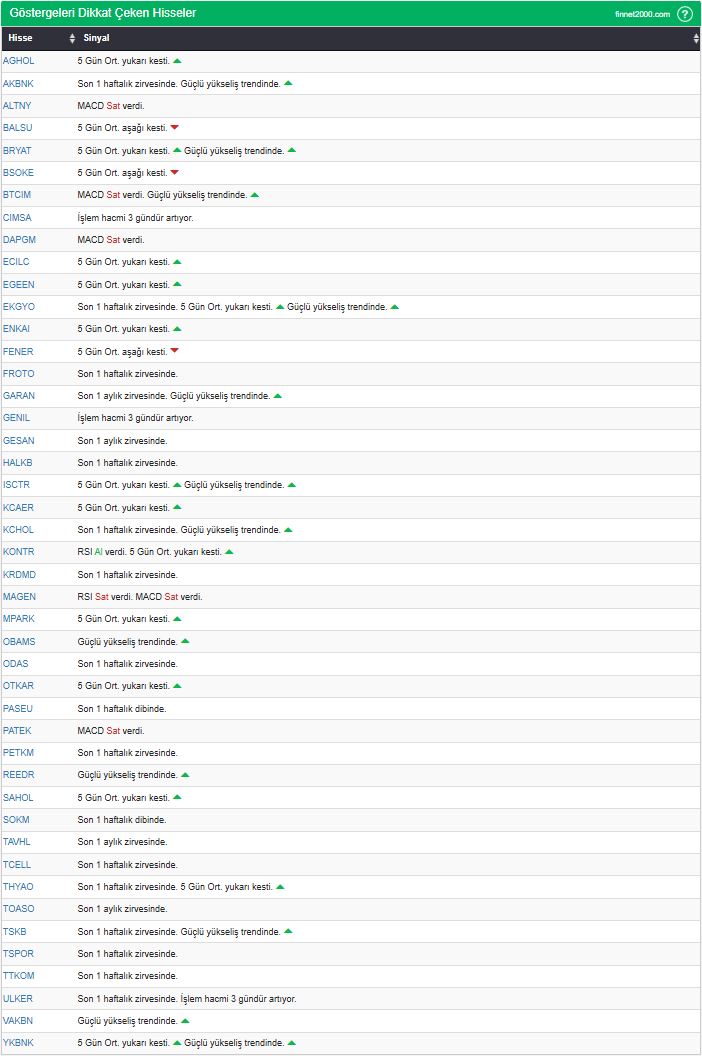 Göstergelerin Kullanımında Dikkat Edilmesi Gereken Hususlar: Göstergeler, hisse senedi seçiminde tek başına yeterli değildir. Teknik Analiz Literatüründe yaygın olan, gösterge kullanımı dikkate alınarak veriler hesaplanmıştır. Diğer teknik analiz yöntemleri ile birlikte kullanılmalıdır. Burada ön plana çıkan hisse senetleri, diğer teknik analiz yöntemleri ve temel analizle desteklendikten sonra tutarlı sonuçlar elde edilebilir. Osilatör ve göstergelerin fiyat hareketine karşı duyarlı oldukları unutulmamalıdır.