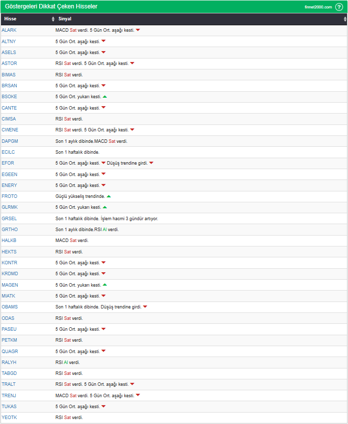 Göstergelerin Kullanımında Dikkat Edilmesi Gereken Hususlar: Göstergeler, hisse senedi seçiminde tek başına yeterli değildir. Teknik Analiz Literatüründe yaygın olan, gösterge kullanımı dikkate alınarak veriler hesaplanmıştır. Diğer teknik analiz yöntemleri ile birlikte kullanılmalıdır. Burada ön plana çıkan hisse senetleri, diğer teknik analiz yöntemleri ve temel analizle desteklendikten sonra tutarlı sonuçlar elde edilebilir. Osilatör ve göstergelerin fiyat hareketine karşı duyarlı oldukları unutulmamalıdır.