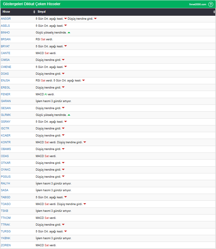 Göstergelerin Kullanımında Dikkat Edilmesi Gereken Hususlar: Göstergeler, hisse senedi seçiminde tek başına yeterli değildir. Teknik Analiz Literatüründe yaygın olan, gösterge kullanımı dikkate alınarak veriler hesaplanmıştır. Diğer teknik analiz yöntemleri ile birlikte kullanılmalıdır. Burada ön plana çıkan hisse senetleri, diğer teknik analiz yöntemleri ve temel analizle desteklendikten sonra tutarlı sonuçlar elde edilebilir. Osilatör ve göstergelerin fiyat hareketine karşı duyarlı oldukları unutulmamalıdır.
