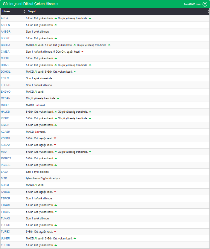 Göstergelerin Kullanımında Dikkat Edilmesi Gereken Hususlar: Göstergeler, hisse senedi seçiminde tek başına yeterli değildir. Teknik Analiz Literatüründe yaygın olan, gösterge kullanımı dikkate alınarak veriler hesaplanmıştır. Diğer teknik analiz yöntemleri ile birlikte kullanılmalıdır. Burada ön plana çıkan hisse senetleri, diğer teknik analiz yöntemleri ve temel analizle desteklendikten sonra tutarlı sonuçlar elde edilebilir. Osilatör ve göstergelerin fiyat hareketine karşı duyarlı oldukları unutulmamalıdır.