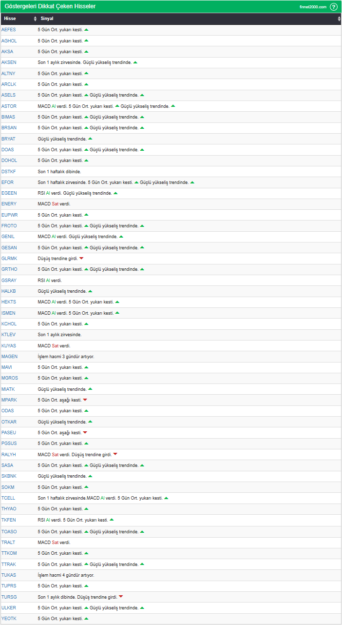 Göstergelerin Kullanımında Dikkat Edilmesi Gereken Hususlar: Göstergeler, hisse senedi seçiminde tek başına yeterli değildir. Teknik Analiz Literatüründe yaygın olan, gösterge kullanımı dikkate alınarak veriler hesaplanmıştır. Diğer teknik analiz yöntemleri ile birlikte kullanılmalıdır. Burada ön plana çıkan hisse senetleri, diğer teknik analiz yöntemleri ve temel analizle desteklendikten sonra tutarlı sonuçlar elde edilebilir. Osilatör ve göstergelerin fiyat hareketine karşı duyarlı oldukları unutulmamalıdır.