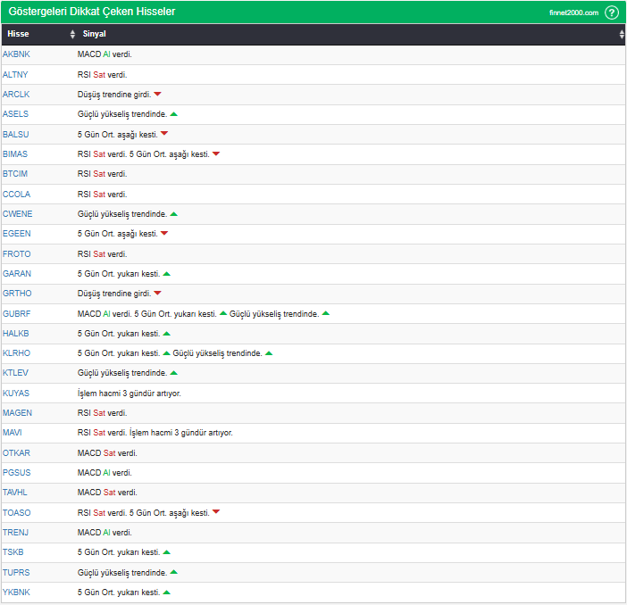 Göstergelerin Kullanımında Dikkat Edilmesi Gereken Hususlar: Göstergeler, hisse senedi seçiminde tek başına yeterli değildir. Teknik Analiz Literatüründe yaygın olan, gösterge kullanımı dikkate alınarak veriler hesaplanmıştır. Diğer teknik analiz yöntemleri ile birlikte kullanılmalıdır. Burada ön plana çıkan hisse senetleri, diğer teknik analiz yöntemleri ve temel analizle desteklendikten sonra tutarlı sonuçlar elde edilebilir. Osilatör ve göstergelerin fiyat hareketine karşı duyarlı oldukları unutulmamalıdır.