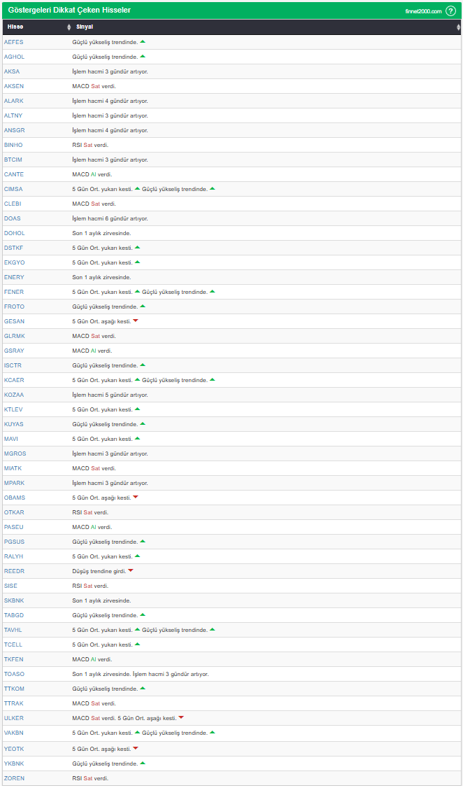 Göstergelerin Kullanımında Dikkat Edilmesi Gereken Hususlar: Göstergeler, hisse senedi seçiminde tek başına yeterli değildir. Teknik Analiz Literatüründe yaygın olan, gösterge kullanımı dikkate alınarak veriler hesaplanmıştır. Diğer teknik analiz yöntemleri ile birlikte kullanılmalıdır. Burada ön plana çıkan hisse senetleri, diğer teknik analiz yöntemleri ve temel analizle desteklendikten sonra tutarlı sonuçlar elde edilebilir. Osilatör ve göstergelerin fiyat hareketine karşı duyarlı oldukları unutulmamalıdır.