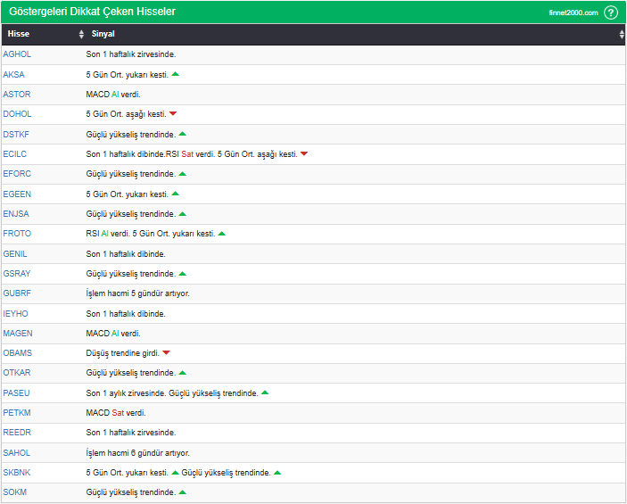Göstergelerin Kullanımında Dikkat Edilmesi Gereken Hususlar: Göstergeler, hisse senedi seçiminde tek başına yeterli değildir. Teknik Analiz Literatüründe yaygın olan, gösterge kullanımı dikkate alınarak veriler hesaplanmıştır. Diğer teknik analiz yöntemleri ile birlikte kullanılmalıdır. Burada ön plana çıkan hisse senetleri, diğer teknik analiz yöntemleri ve temel analizle desteklendikten sonra tutarlı sonuçlar elde edilebilir. Osilatör ve göstergelerin fiyat hareketine karşı duyarlı oldukları unutulmamalıdır.