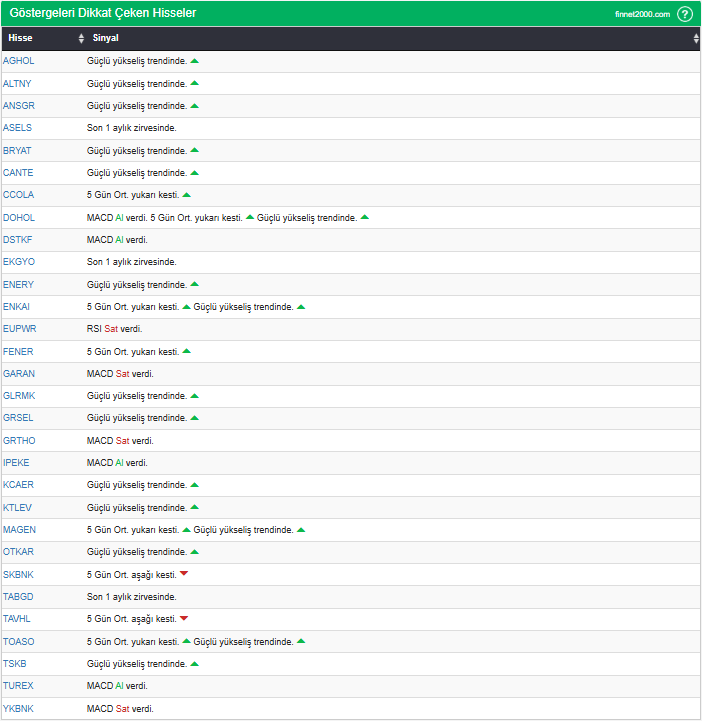Göstergelerin Kullanımında Dikkat Edilmesi Gereken Hususlar: Göstergeler, hisse senedi seçiminde tek başına yeterli değildir. Teknik Analiz Literatüründe yaygın olan, gösterge kullanımı dikkate alınarak veriler hesaplanmıştır. Diğer teknik analiz yöntemleri ile birlikte kullanılmalıdır. Burada ön plana çıkan hisse senetleri, diğer teknik analiz yöntemleri ve temel analizle desteklendikten sonra tutarlı sonuçlar elde edilebilir. Osilatör ve göstergelerin fiyat hareketine karşı duyarlı oldukları unutulmamalıdır.