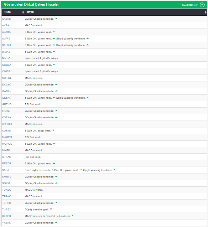 Göstergelerin Kullanımında Dikkat Edilmesi Gereken Hususlar: Göstergeler, hisse senedi seçiminde tek başına yeterli değildir. Teknik Analiz Literatüründe yaygın olan, gösterge kullanımı dikkate alınarak veriler hesaplanmıştır. Diğer teknik analiz yöntemleri ile birlikte kullanılmalıdır. Burada ön plana çıkan hisse senetleri, diğer teknik analiz yöntemleri ve temel analizle desteklendikten sonra tutarlı sonuçlar elde edilebilir. Osilatör ve göstergelerin fiyat hareketine karşı duyarlı oldukları unutulmamalıdır.