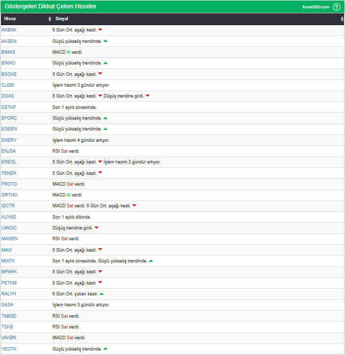 Göstergelerin Kullanımında Dikkat Edilmesi Gereken Hususlar: Göstergeler, hisse senedi seçiminde tek başına yeterli değildir. Teknik Analiz Literatüründe yaygın olan, gösterge kullanımı dikkate alınarak veriler hesaplanmıştır. Diğer teknik analiz yöntemleri ile birlikte kullanılmalıdır. Burada ön plana çıkan hisse senetleri, diğer teknik analiz yöntemleri ve temel analizle desteklendikten sonra tutarlı sonuçlar elde edilebilir. Osilatör ve göstergelerin fiyat hareketine karşı duyarlı oldukları unutulmamalıdır.
