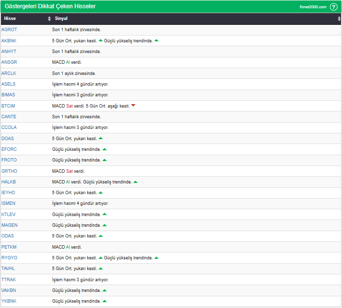 Göstergelerin Kullanımında Dikkat Edilmesi Gereken Hususlar: Göstergeler, hisse senedi seçiminde tek başına yeterli değildir. Teknik Analiz Literatüründe yaygın olan, gösterge kullanımı dikkate alınarak veriler hesaplanmıştır. Diğer teknik analiz yöntemleri ile birlikte kullanılmalıdır. Burada ön plana çıkan hisse senetleri, diğer teknik analiz yöntemleri ve temel analizle desteklendikten sonra tutarlı sonuçlar elde edilebilir. Osilatör ve göstergelerin fiyat hareketine karşı duyarlı oldukları unutulmamalıdır.