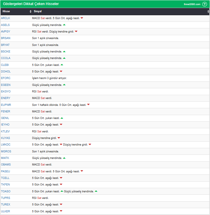Göstergelerin Kullanımında Dikkat Edilmesi Gereken Hususlar: Göstergeler, hisse senedi seçiminde tek başına yeterli değildir. Teknik Analiz Literatüründe yaygın olan, gösterge kullanımı dikkate alınarak veriler hesaplanmıştır. Diğer teknik analiz yöntemleri ile birlikte kullanılmalıdır. Burada ön plana çıkan hisse senetleri, diğer teknik analiz yöntemleri ve temel analizle desteklendikten sonra tutarlı sonuçlar elde edilebilir. Osilatör ve göstergelerin fiyat hareketine karşı duyarlı oldukları unutulmamalıdır.