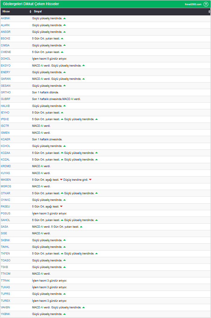 Göstergelerin Kullanımında Dikkat Edilmesi Gereken Hususlar: Göstergeler, hisse senedi seçiminde tek başına yeterli değildir. Teknik Analiz Literatüründe yaygın olan, gösterge kullanımı dikkate alınarak veriler hesaplanmıştır. Diğer teknik analiz yöntemleri ile birlikte kullanılmalıdır. Burada ön plana çıkan hisse senetleri, diğer teknik analiz yöntemleri ve temel analizle desteklendikten sonra tutarlı sonuçlar elde edilebilir. Osilatör ve göstergelerin fiyat hareketine karşı duyarlı oldukları unutulmamalıdır.