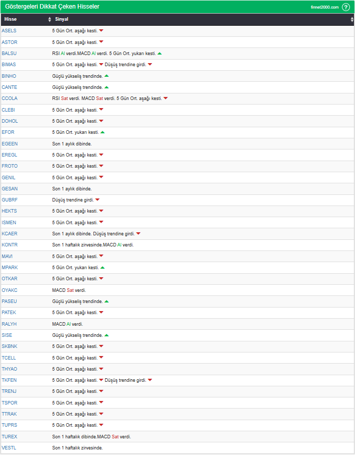 Göstergelerin Kullanımında Dikkat Edilmesi Gereken Hususlar: Göstergeler, hisse senedi seçiminde tek başına yeterli değildir. Teknik Analiz Literatüründe yaygın olan, gösterge kullanımı dikkate alınarak veriler hesaplanmıştır. Diğer teknik analiz yöntemleri ile birlikte kullanılmalıdır. Burada ön plana çıkan hisse senetleri, diğer teknik analiz yöntemleri ve temel analizle desteklendikten sonra tutarlı sonuçlar elde edilebilir. Osilatör ve göstergelerin fiyat hareketine karşı duyarlı oldukları unutulmamalıdır.