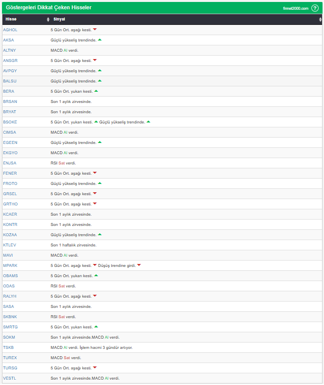 Göstergelerin Kullanımında Dikkat Edilmesi Gereken Hususlar: Göstergeler, hisse senedi seçiminde tek başına yeterli değildir. Teknik Analiz Literatüründe yaygın olan, gösterge kullanımı dikkate alınarak veriler hesaplanmıştır. Diğer teknik analiz yöntemleri ile birlikte kullanılmalıdır. Burada ön plana çıkan hisse senetleri, diğer teknik analiz yöntemleri ve temel analizle desteklendikten sonra tutarlı sonuçlar elde edilebilir. Osilatör ve göstergelerin fiyat hareketine karşı duyarlı oldukları unutulmamalıdır.