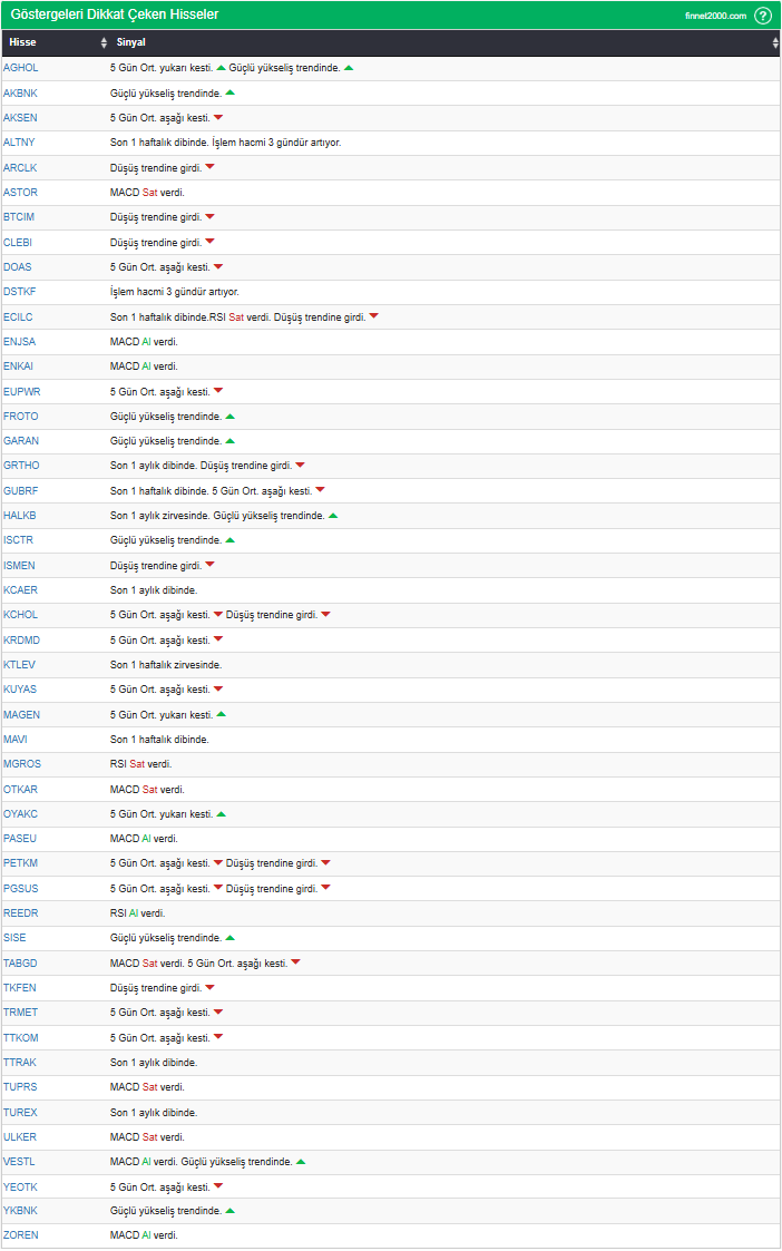 Göstergelerin Kullanımında Dikkat Edilmesi Gereken Hususlar: Göstergeler, hisse senedi seçiminde tek başına yeterli değildir. Teknik Analiz Literatüründe yaygın olan, gösterge kullanımı dikkate alınarak veriler hesaplanmıştır. Diğer teknik analiz yöntemleri ile birlikte kullanılmalıdır. Burada ön plana çıkan hisse senetleri, diğer teknik analiz yöntemleri ve temel analizle desteklendikten sonra tutarlı sonuçlar elde edilebilir. Osilatör ve göstergelerin fiyat hareketine karşı duyarlı oldukları unutulmamalıdır.