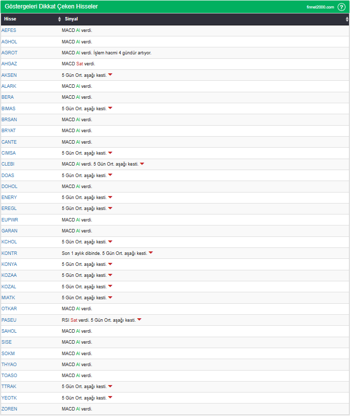 Göstergelerin Kullanımında Dikkat Edilmesi Gereken Hususlar: Göstergeler, hisse senedi seçiminde tek başına yeterli değildir. Teknik Analiz Literatüründe yaygın olan, gösterge kullanımı dikkate alınarak veriler hesaplanmıştır. Diğer teknik analiz yöntemleri ile birlikte kullanılmalıdır. Burada ön plana çıkan hisse senetleri, diğer teknik analiz yöntemleri ve temel analizle desteklendikten sonra tutarlı sonuçlar elde edilebilir. Osilatör ve göstergelerin fiyat hareketine karşı duyarlı oldukları unutulmamalıdır.