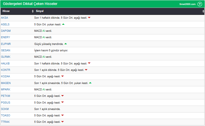 Göstergelerin Kullanımında Dikkat Edilmesi Gereken Hususlar: Göstergeler, hisse senedi seçiminde tek başına yeterli değildir. Teknik Analiz Literatüründe yaygın olan, gösterge kullanımı dikkate alınarak veriler hesaplanmıştır. Diğer teknik analiz yöntemleri ile birlikte kullanılmalıdır. Burada ön plana çıkan hisse senetleri, diğer teknik analiz yöntemleri ve temel analizle desteklendikten sonra tutarlı sonuçlar elde edilebilir. Osilatör ve göstergelerin fiyat hareketine karşı duyarlı oldukları unutulmamalıdır.