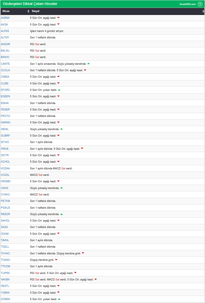 Göstergelerin Kullanımında Dikkat Edilmesi Gereken Hususlar: Göstergeler, hisse senedi seçiminde tek başına yeterli değildir. Teknik Analiz Literatüründe yaygın olan, gösterge kullanımı dikkate alınarak veriler hesaplanmıştır. Diğer teknik analiz yöntemleri ile birlikte kullanılmalıdır. Burada ön plana çıkan hisse senetleri, diğer teknik analiz yöntemleri ve temel analizle desteklendikten sonra tutarlı sonuçlar elde edilebilir. Osilatör ve göstergelerin fiyat hareketine karşı duyarlı oldukları unutulmamalıdır.