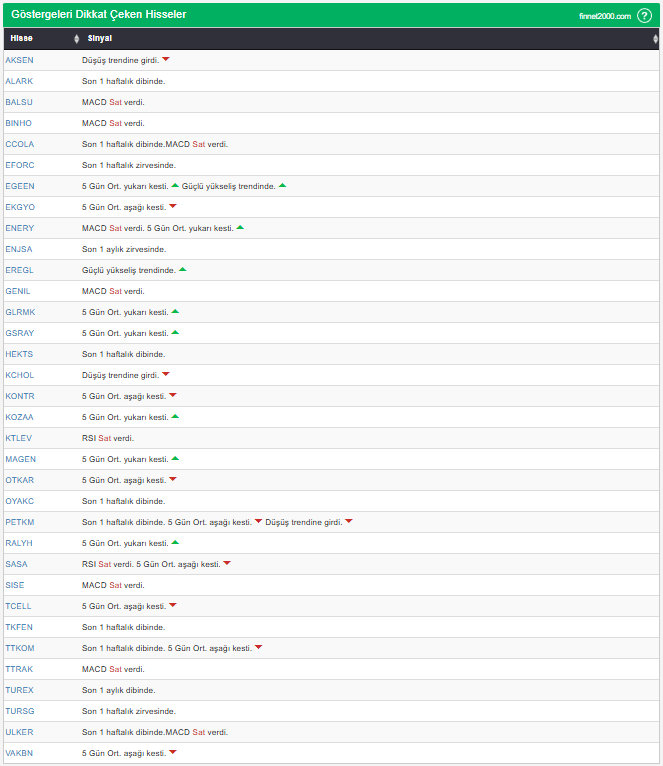 Göstergelerin Kullanımında Dikkat Edilmesi Gereken Hususlar: Göstergeler, hisse senedi seçiminde tek başına yeterli değildir. Teknik Analiz Literatüründe yaygın olan, gösterge kullanımı dikkate alınarak veriler hesaplanmıştır. Diğer teknik analiz yöntemleri ile birlikte kullanılmalıdır. Burada ön plana çıkan hisse senetleri, diğer teknik analiz yöntemleri ve temel analizle desteklendikten sonra tutarlı sonuçlar elde edilebilir. Osilatör ve göstergelerin fiyat hareketine karşı duyarlı oldukları unutulmamalıdır.