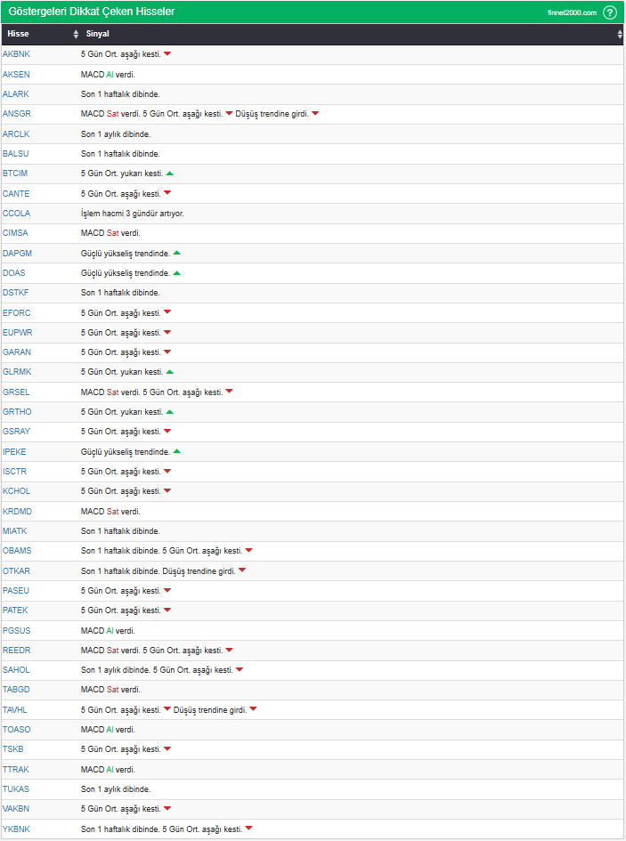 Göstergelerin Kullanımında Dikkat Edilmesi Gereken Hususlar: Göstergeler, hisse senedi seçiminde tek başına yeterli değildir. Teknik Analiz Literatüründe yaygın olan, gösterge kullanımı dikkate alınarak veriler hesaplanmıştır. Diğer teknik analiz yöntemleri ile birlikte kullanılmalıdır. Burada ön plana çıkan hisse senetleri, diğer teknik analiz yöntemleri ve temel analizle desteklendikten sonra tutarlı sonuçlar elde edilebilir. Osilatör ve göstergelerin fiyat hareketine karşı duyarlı oldukları unutulmamalıdır.