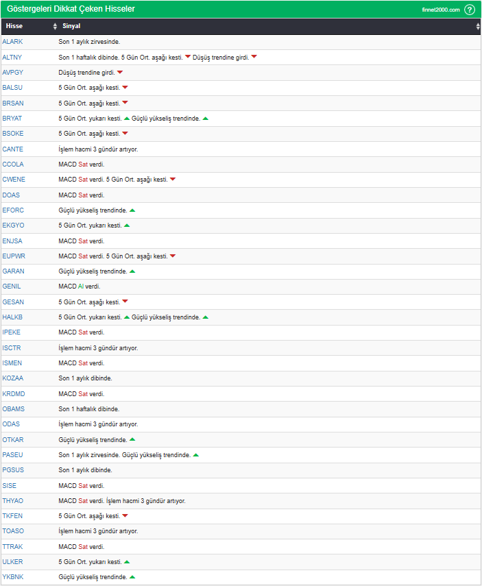 Göstergelerin Kullanımında Dikkat Edilmesi Gereken Hususlar: Göstergeler, hisse senedi seçiminde tek başına yeterli değildir. Teknik Analiz Literatüründe yaygın olan, gösterge kullanımı dikkate alınarak veriler hesaplanmıştır. Diğer teknik analiz yöntemleri ile birlikte kullanılmalıdır. Burada ön plana çıkan hisse senetleri, diğer teknik analiz yöntemleri ve temel analizle desteklendikten sonra tutarlı sonuçlar elde edilebilir. Osilatör ve göstergelerin fiyat hareketine karşı duyarlı oldukları unutulmamalıdır.