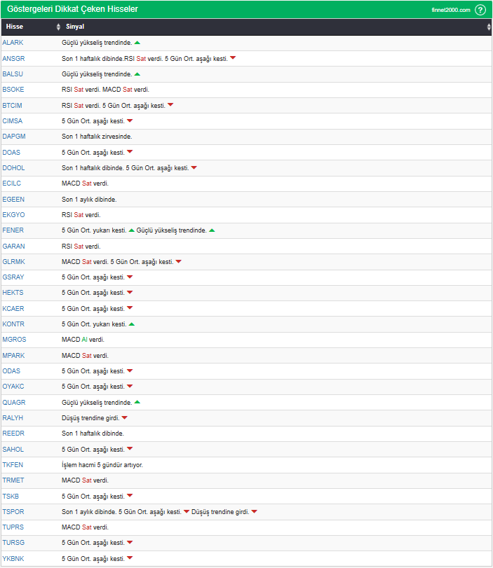 Göstergelerin Kullanımında Dikkat Edilmesi Gereken Hususlar: Göstergeler, hisse senedi seçiminde tek başına yeterli değildir. Teknik Analiz Literatüründe yaygın olan, gösterge kullanımı dikkate alınarak veriler hesaplanmıştır. Diğer teknik analiz yöntemleri ile birlikte kullanılmalıdır. Burada ön plana çıkan hisse senetleri, diğer teknik analiz yöntemleri ve temel analizle desteklendikten sonra tutarlı sonuçlar elde edilebilir. Osilatör ve göstergelerin fiyat hareketine karşı duyarlı oldukları unutulmamalıdır.