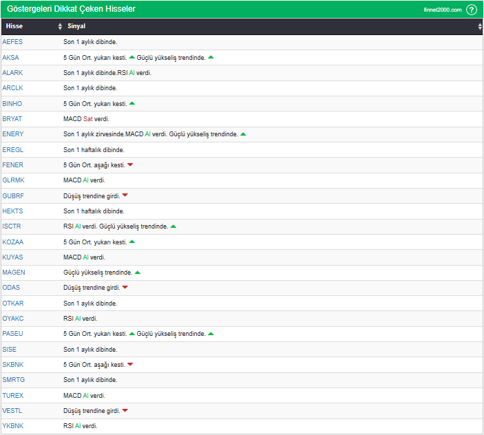 Göstergelerin Kullanımında Dikkat Edilmesi Gereken Hususlar: Göstergeler, hisse senedi seçiminde tek başına yeterli değildir. Teknik Analiz Literatüründe yaygın olan, gösterge kullanımı dikkate alınarak veriler hesaplanmıştır. Diğer teknik analiz yöntemleri ile birlikte kullanılmalıdır. Burada ön plana çıkan hisse senetleri, diğer teknik analiz yöntemleri ve temel analizle desteklendikten sonra tutarlı sonuçlar elde edilebilir. Osilatör ve göstergelerin fiyat hareketine karşı duyarlı oldukları unutulmamalıdır.