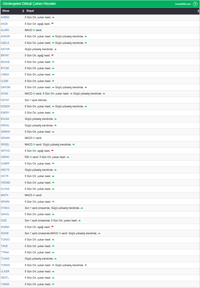 Göstergelerin Kullanımında Dikkat Edilmesi Gereken Hususlar: Göstergeler, hisse senedi seçiminde tek başına yeterli değildir. Teknik Analiz Literatüründe yaygın olan, gösterge kullanımı dikkate alınarak veriler hesaplanmıştır. Diğer teknik analiz yöntemleri ile birlikte kullanılmalıdır. Burada ön plana çıkan hisse senetleri, diğer teknik analiz yöntemleri ve temel analizle desteklendikten sonra tutarlı sonuçlar elde edilebilir. Osilatör ve göstergelerin fiyat hareketine karşı duyarlı oldukları unutulmamalıdır.