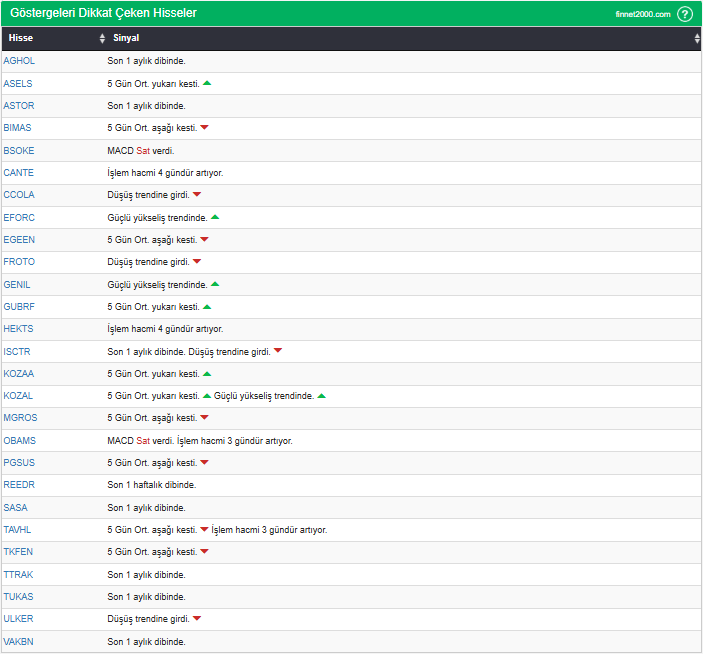 Göstergelerin Kullanımında Dikkat Edilmesi Gereken Hususlar: Göstergeler, hisse senedi seçiminde tek başına yeterli değildir. Teknik Analiz Literatüründe yaygın olan, gösterge kullanımı dikkate alınarak veriler hesaplanmıştır. Diğer teknik analiz yöntemleri ile birlikte kullanılmalıdır. Burada ön plana çıkan hisse senetleri, diğer teknik analiz yöntemleri ve temel analizle desteklendikten sonra tutarlı sonuçlar elde edilebilir. Osilatör ve göstergelerin fiyat hareketine karşı duyarlı oldukları unutulmamalıdır.