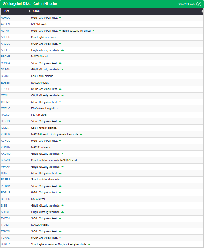 Göstergelerin Kullanımında Dikkat Edilmesi Gereken Hususlar: Göstergeler, hisse senedi seçiminde tek başına yeterli değildir. Teknik Analiz Literatüründe yaygın olan, gösterge kullanımı dikkate alınarak veriler hesaplanmıştır. Diğer teknik analiz yöntemleri ile birlikte kullanılmalıdır. Burada ön plana çıkan hisse senetleri, diğer teknik analiz yöntemleri ve temel analizle desteklendikten sonra tutarlı sonuçlar elde edilebilir. Osilatör ve göstergelerin fiyat hareketine karşı duyarlı oldukları unutulmamalıdır.