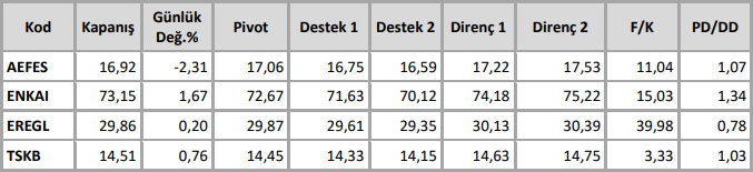 AEFES, AKBNK: 100 günlük ortalama desteğinden tepki beklentisi