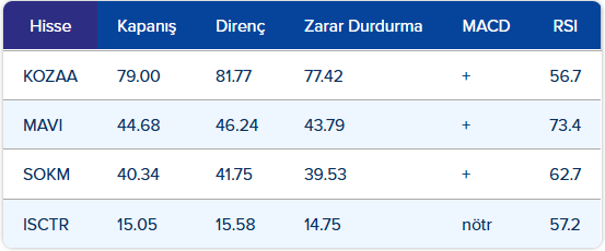 Deniz Yatırım’ın Seçilmiş İndikatörler Puanlama Sistemine Göre Bugün Öne Çıkardığı Hisse Senetleri