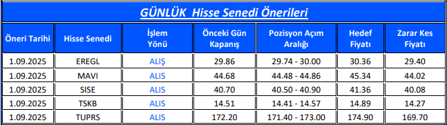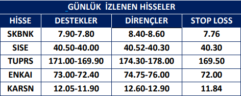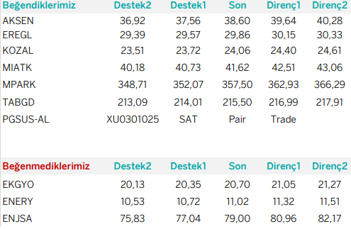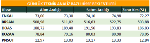 EGEEN, TSKB, TUPRS, BRSAN ve ENJSA