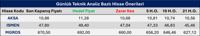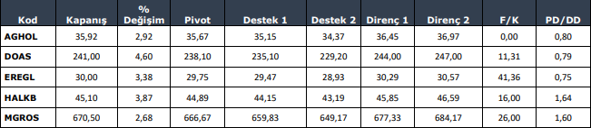 AEFES, AGHOL, ALARK, BIMAS, BRSAN: Güçlü teknik görünümün devamı