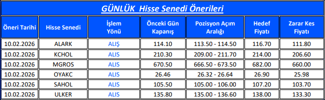 Bulls Yatırım Günlük Takip Listesi