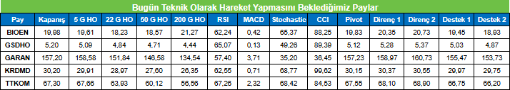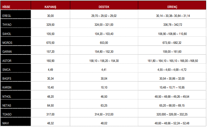 ULKER : Takip ettiğimiz önemli destek bölgesi üzerinde kapanış yaptığını görmekteyiz. 133.40 seviyesi üzerinde yukarı yönlü fiyat hareketlerinin olası olabileceğini düşünmekteyiz. Olası geri çekilmelerde 134.80 seviyesini ara destek olarak takip etmekteyiz. Yukarıda 138.80 ve 141.30 seviyelerini sıralı hedefler olarak takip etmekteyiz.