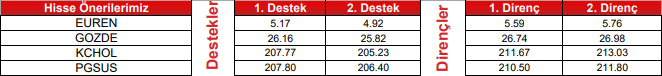 KCHOL : Takip ettiğimiz önemli destek bölgesi üzerinde kapanış yaptığını görmekteyiz. 207.20 seviyesi üzerinde yukarı yönlü fiyat hareketlerinin olası olabileceğini düşünmekteyiz. Olası geri çekilmelerde 208.90 seviyesini ara destek olarak takip etmekteyiz. Yukarıda 214.00 ve 217.60 seviyelerini sıralı hedefler olarak takip etmekteyiz.