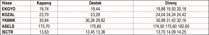 İntegral Yatırım’ın Bugün Hareketli Olmasını Beklediği Hisse Senetleri: