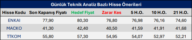 Deniz Yatırım’ın Seçilmiş İndikatörler Puanlama Sistemine Göre Bugün Öne Çıkardığı Hisse Senetleri