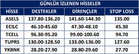 İntegral Yatırım’ın Bugün Hareketli Olmasını Beklediği Hisse Senetleri: