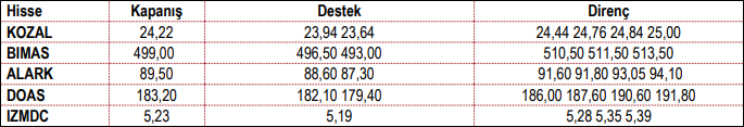 İntegral Yatırım’ın Bugün Hareketli Olmasını Beklediği Hisse Senetleri:
