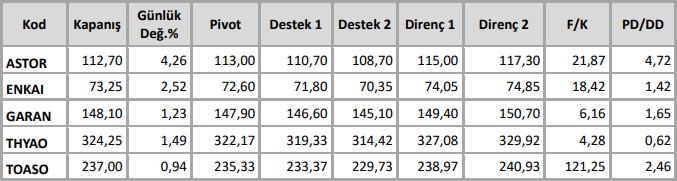 ARCLK, ENJSA, ENKAI, SAHOL ve SASA