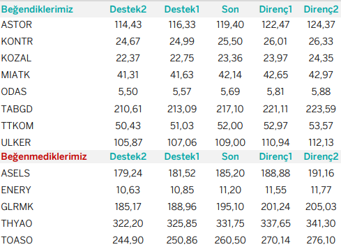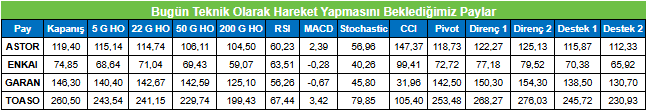 ASTOR, ENERY, MAGEN, SKBNK, BRSAN, GRTHO: Yükseldiği 22 günlük ortalamasının üzerinde güçlenme eğiliminin sürme beklentisi.