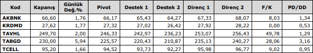 AVPGY : Güçlü momentum ile yatay direnci yukarı yönlü kırmasıyla birlikte zamana yayılan bir geri çekilme olduğu görülüyor. Yukarıda sırasıyla 65.50 – 67.00 – 70.00 seviyelerini takip etmekteyiz. Olası geri çekilmelerde 62.50 ara destek seviyesinin önemli olduğunu düşünüyoruz. Bu seviye altında ana destek olan 61.30 – 61.70 bölgesi var.