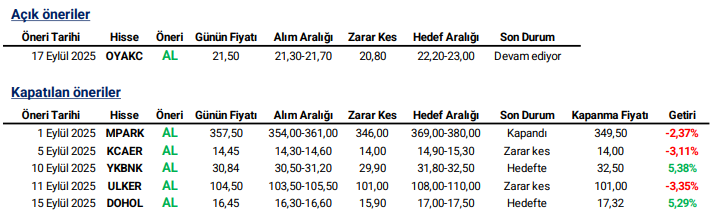 Bulls Yatırım’dan Günlük Takip Listesi: