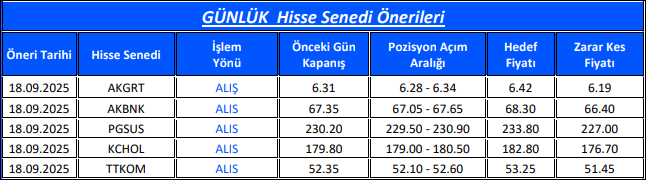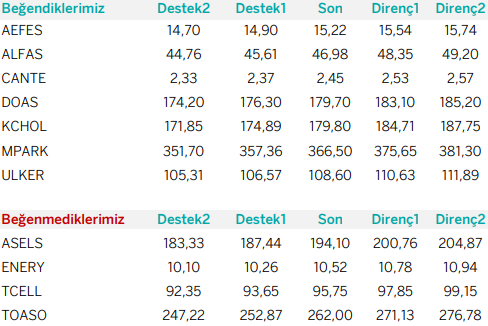 Bulls Yatırım’dan Günlük Takip Listesi