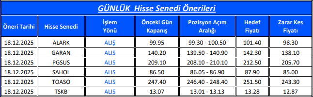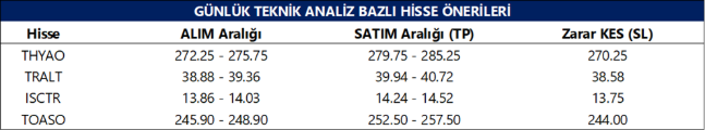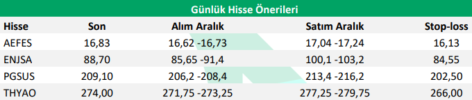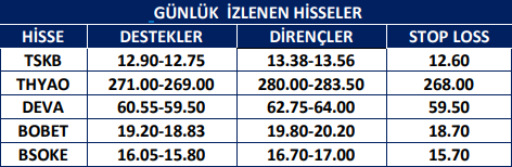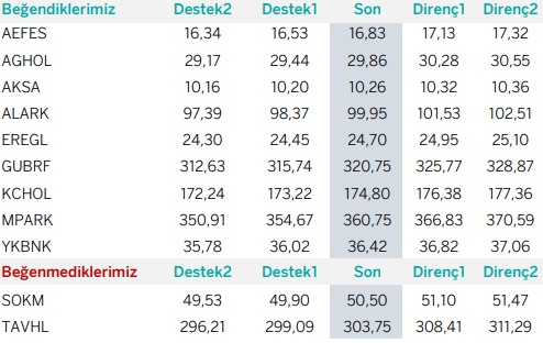 TCELL, TERA, AEFES, ALARK, ANSGR, EFOR, MAVI: Teknik tepki sürebilir.