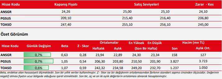 AKSA: Takip ettiğimiz önemli destek bölgesi üzerinde kapanış yaptığını görmekteyiz. 10.11 seviyesi üzerinde yukarı yönlü fiyat hareketlerinin olası olabileceğini düşünmekteyiz. Olası geri çekilmelerde 10.21 seviyesini ara destek olarak takip etmekteyiz. Yukarıda 10.43 – 10.62 ve 10.82 seviyelerini sıralı hedefler olarak takip etmekteyiz.